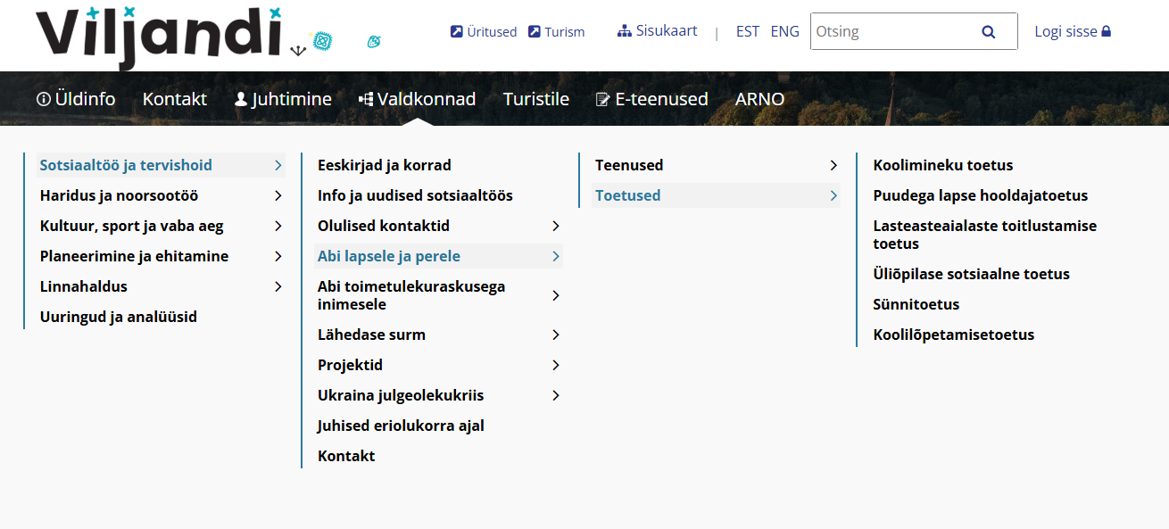 Info erinevate sotsiaaltoetuste kohta on leitav Viljandi Linnavalitsuse koduleheltlink opens on new page: